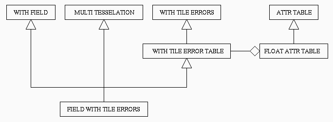 For tile errors only, we define a class that implements the abstract interface by storing error values into a float attribute table. Such class, called WithTileErrorTableClass, contains a pointer to an object of class MT_FloatTableClass. It also implements other functions related to reading and writing tile errors; such functions are implemented by means of the internal float attribute table.
